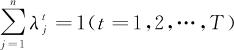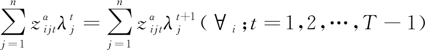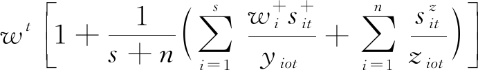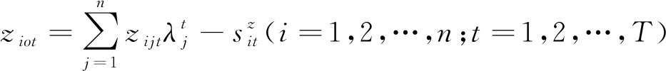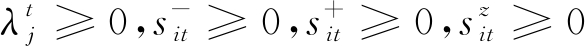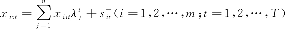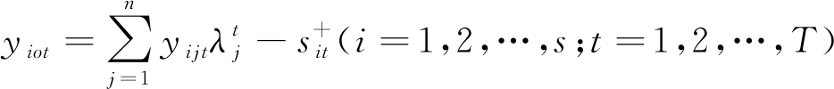 其中,式(2)为 t与t+1的连接方程式;λ表示权重,s表示投入和产出的松弛变量,