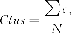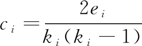 (3)生态网络聚类系数(Eco-network clustering coefficient):能够反映生态网络中节点聚集程度,聚类系数越大,聚集程度越高。根据已有研究[27],生态网络聚类系数计算公式见式(2)和(3)。其中,Ci表示第i个点的聚类系数,取值范围为[0,1],点i与其邻居k个节点之间最多存在ki(ki-1)/2条边,ei为点i与邻居k个节点之间实际存在边的个数。生态网络聚类系数采用Clus表示。