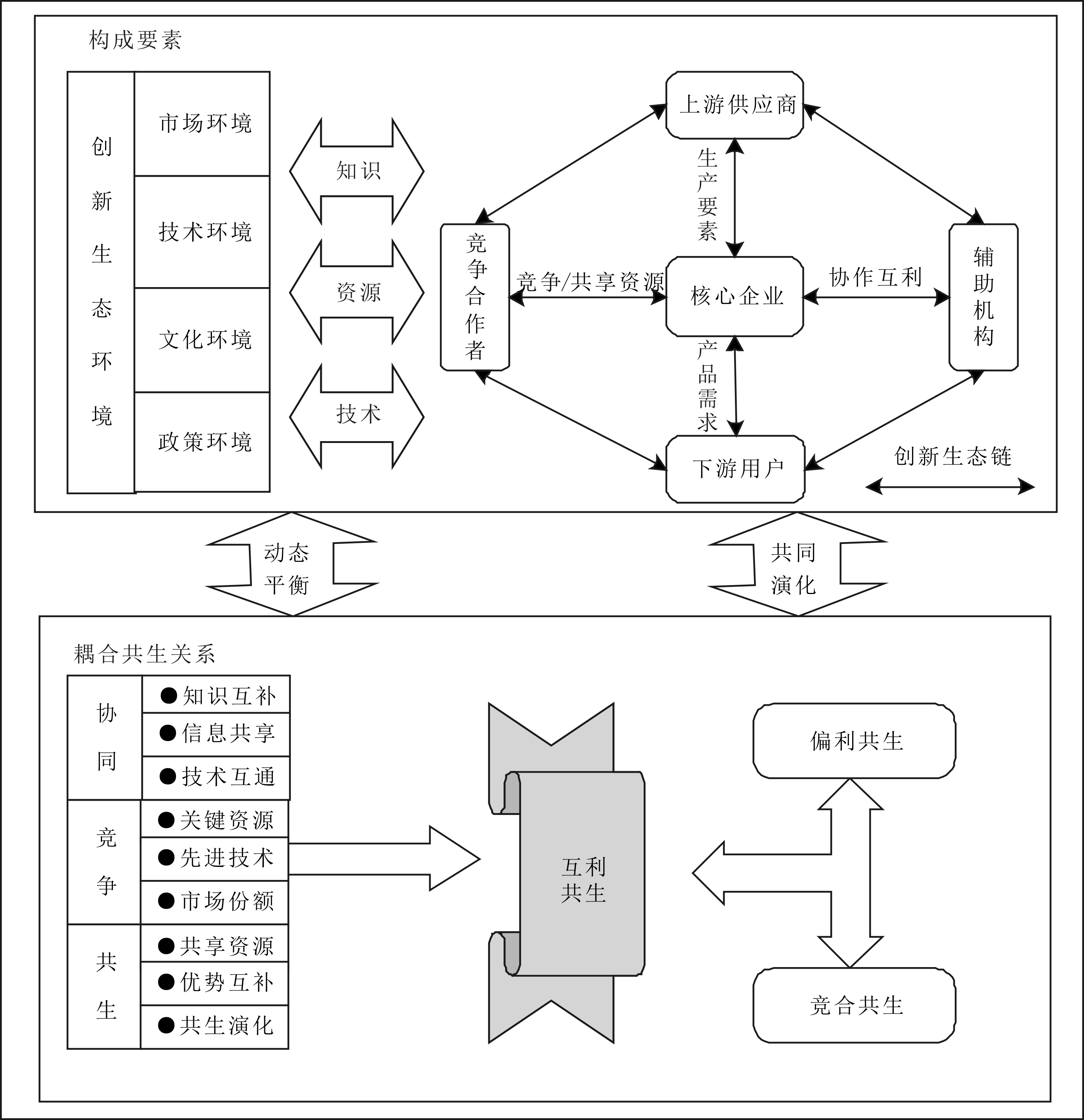 图3 开放式创新生态系统要素构成与种群共生关系