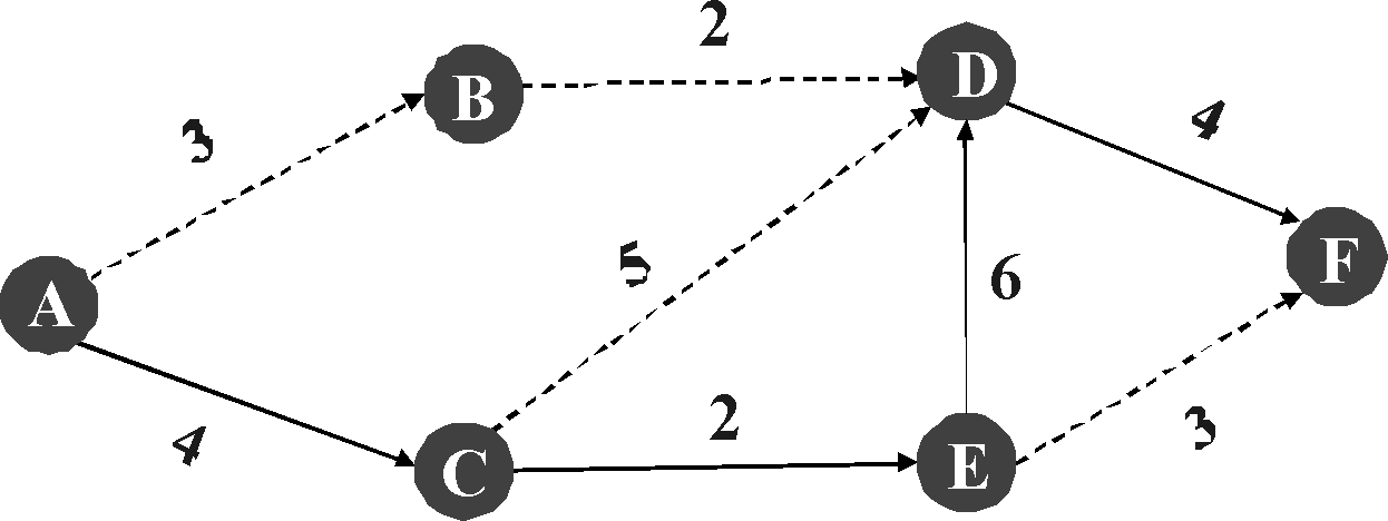 本文采用SPC算法对引文网络进行加权,SPC 值反映从引用源到引用网络所有遍历该链接的次数,链接值越大,表示引用网络越重要。本文运用SPC搜索算法提取加权网络中的全局主路径,即搜索SPC 总数最大的路径。如图3所示,数字代表SPC 值,字母代表节点,实线代表运用SPC 搜索算法提取的全局主路径,即路径A→C→E→D→F。