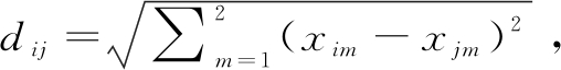 若xim为专利xi在第m个维度上的值,则专利xi与xj之间的欧氏距离