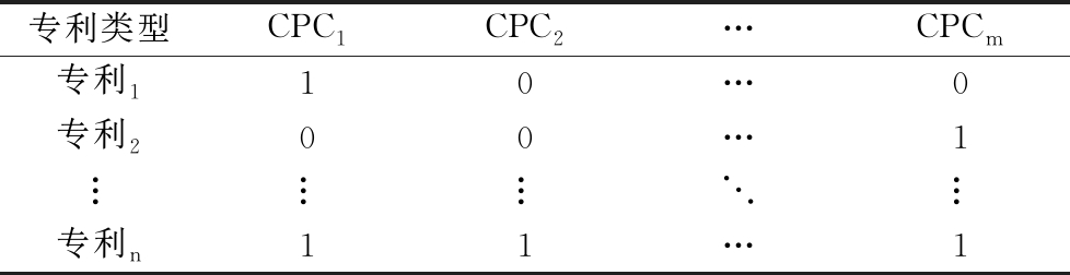 专利类型CPC1CPC2…CPCm专利110…0专利200…1︙︙︙⋱︙专利n11…1