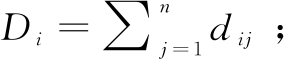 MDS方法基于专利距离降维,设R维空间中的n个专利点为x1,x2,…,xn,用矩阵表示为X=(x1,x2,…,xn)T,专利i与j之间的欧氏距离为dij,则X的中心化内积阵B为: