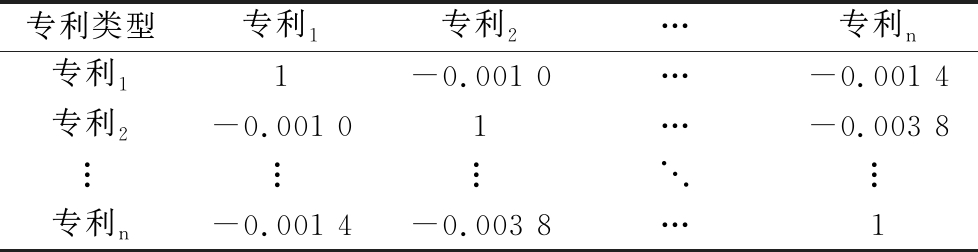 专利类型专利1专利2…专利n专利11-0.001 0…-0.001 4专利2-0.001 01…-0.003 8︙︙︙⋱︙专利n-0.001 4-0.003 8…1