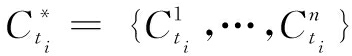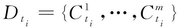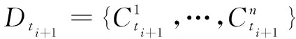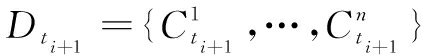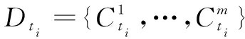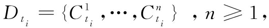 i表示在多个网络快照中存在相似社团LSi>1,仅存活于一个时间戳的社团不构成动态社团,存活时间LFi为动态社团Δi的实际存在时间,以年为计时单位,LFi>1。其中,时间戳ti包含的社团可表示为
