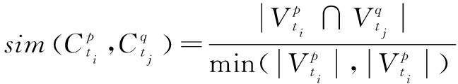 本研究采用即时最优法(Instant Optimal Method)[23]构建动态社团并改进相似度计算法。根据社会分层理论[31]、帕累托法则[32]与文献计量研究,在科学共同体内存在社会分层现象,即学术影响力往往掌握在少数领军者手中[33]。因此,本文改进相似度计算法,用相似度表征两个社团共同成员数占两者间规模较小社团成员数的比例,计算公式如下:
