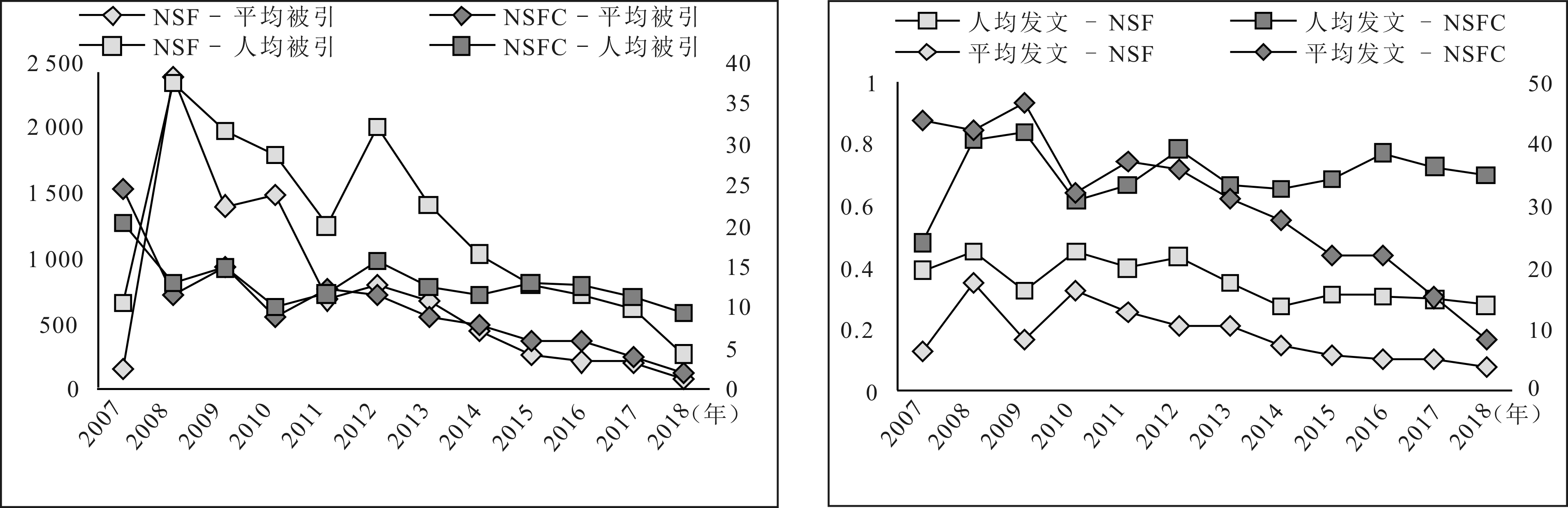 图5 平均被引、人均被引随动态社团诞生时间变化趋势