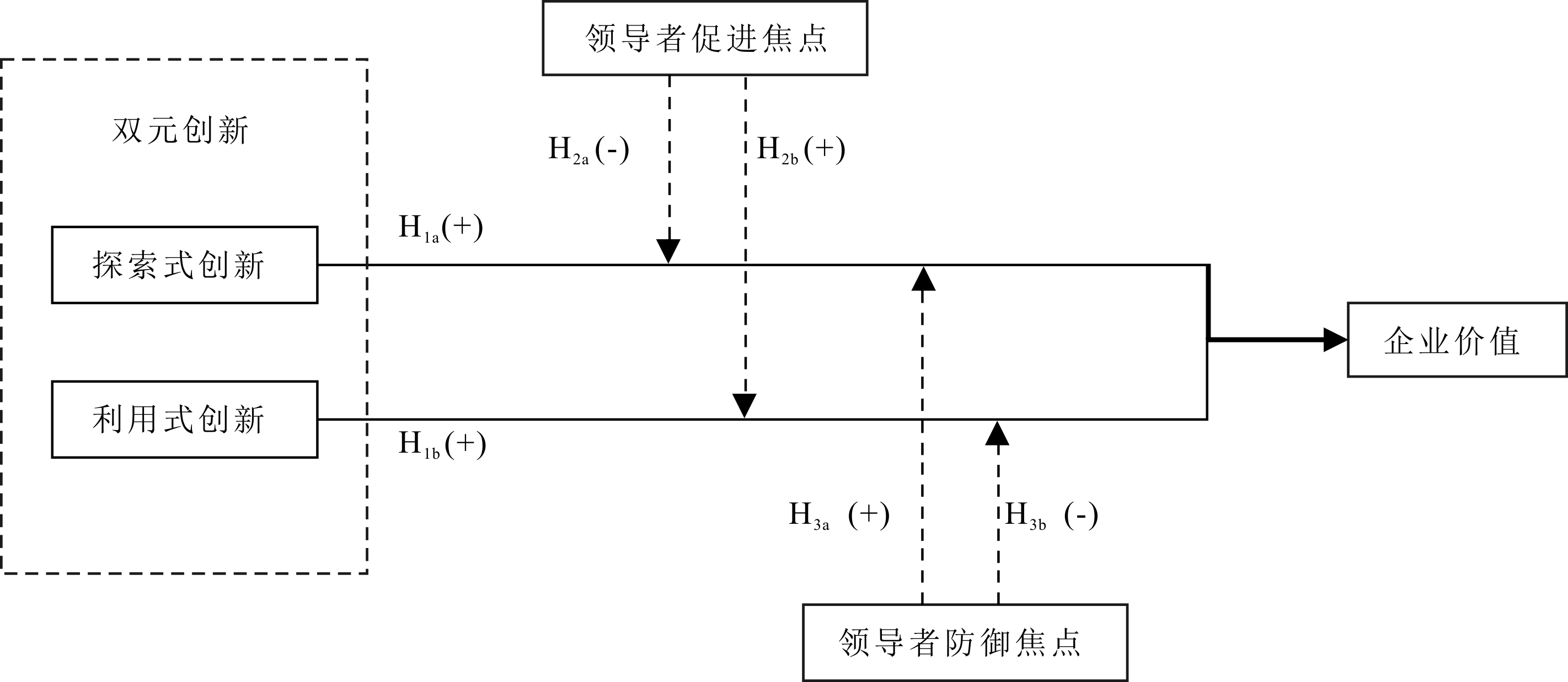 H3b :领导者防御焦点会削弱利用式创新对企业价值的正向影响。