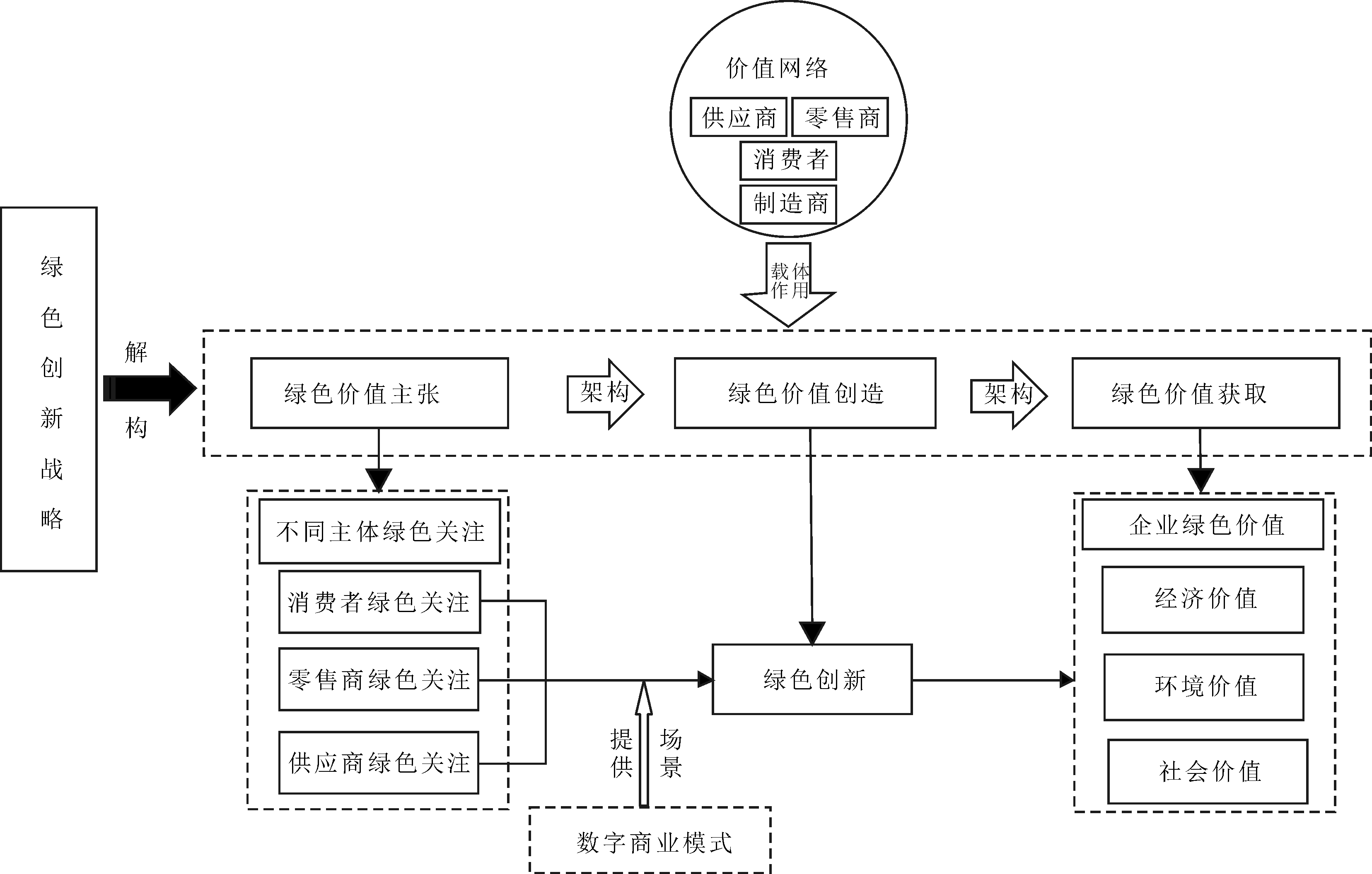 图1 基于数字商业模式的绿色创新战略实施概念模型