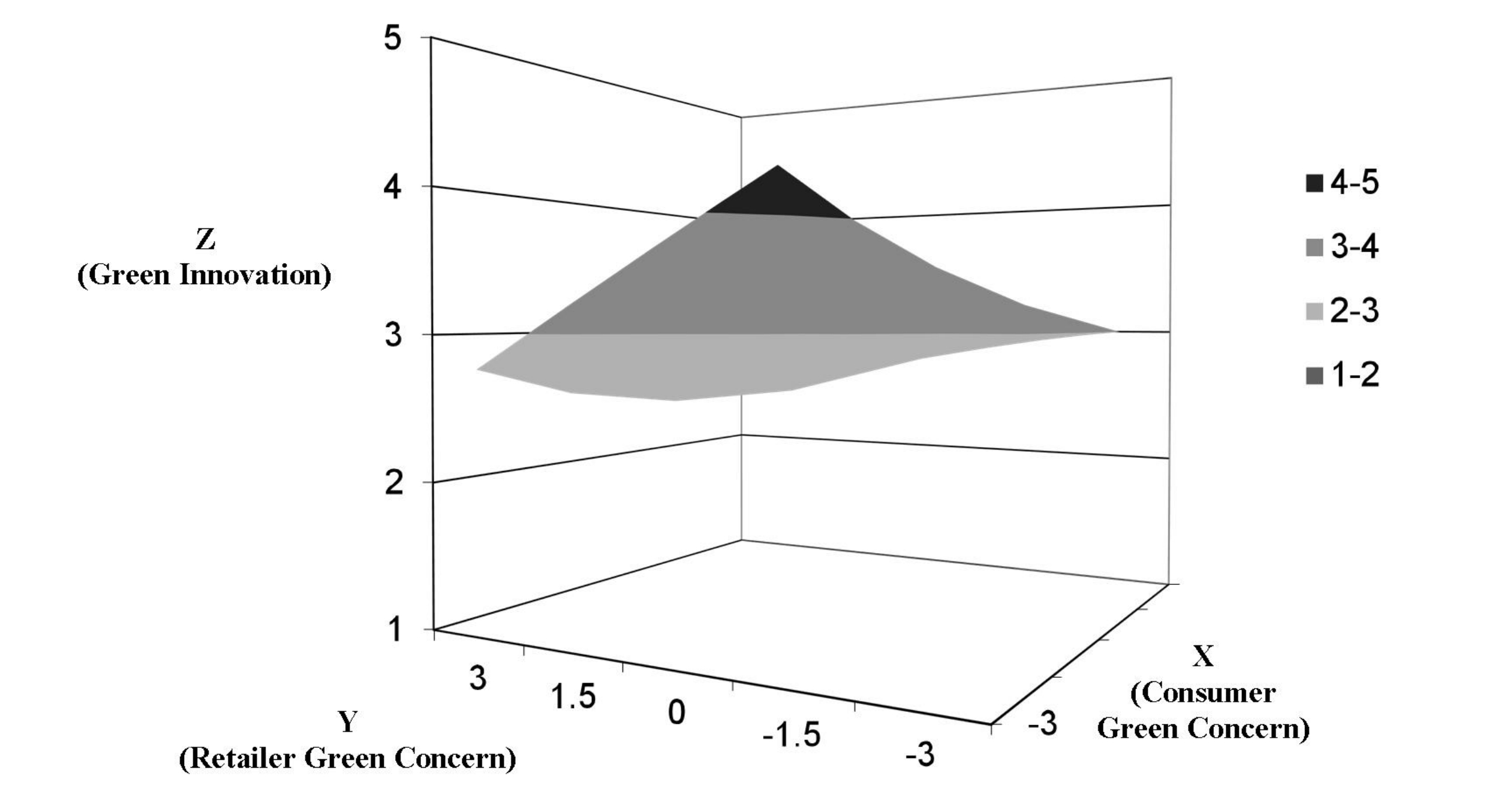 Fig.2 Response surface analysis of consumer green concerns and retailers' green concerns5.2 理论贡献