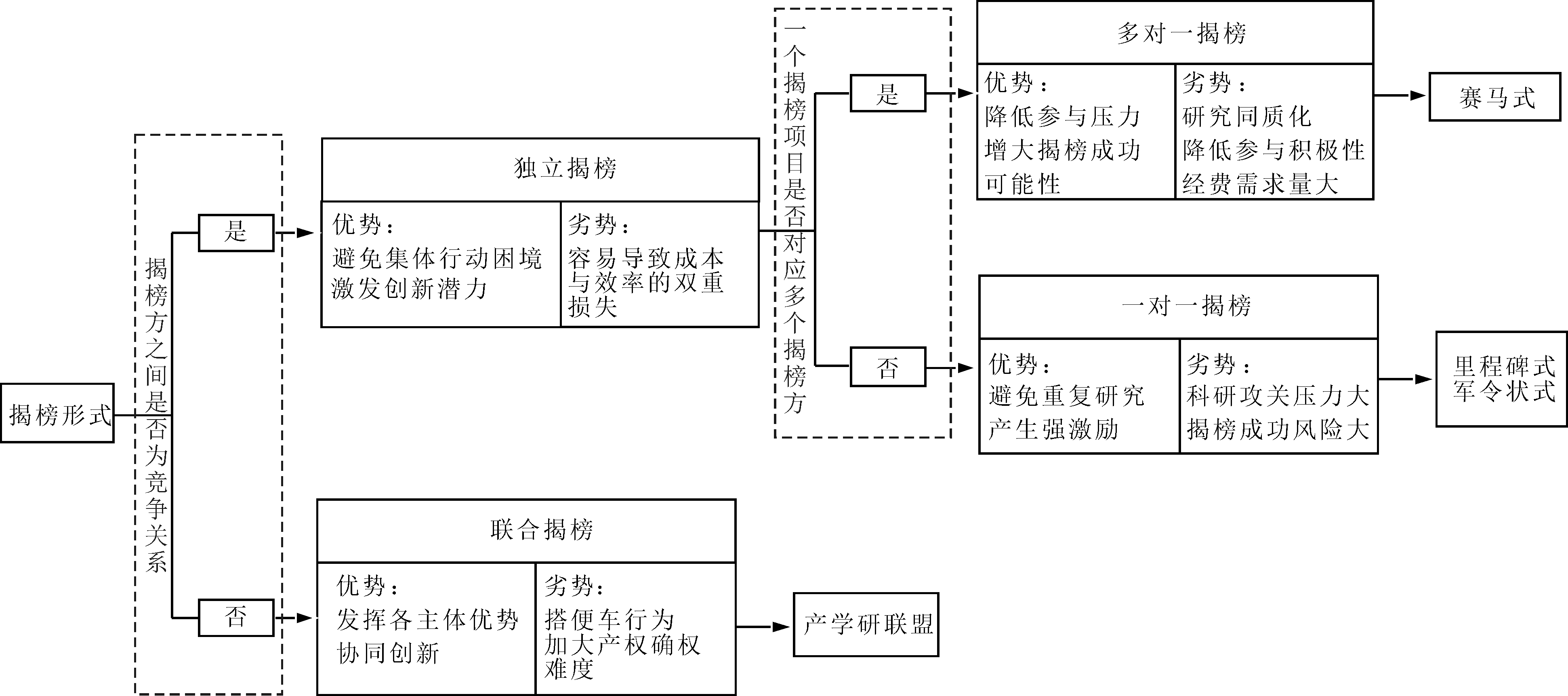 图1 揭榜形式分类标准、优劣势与具体形式