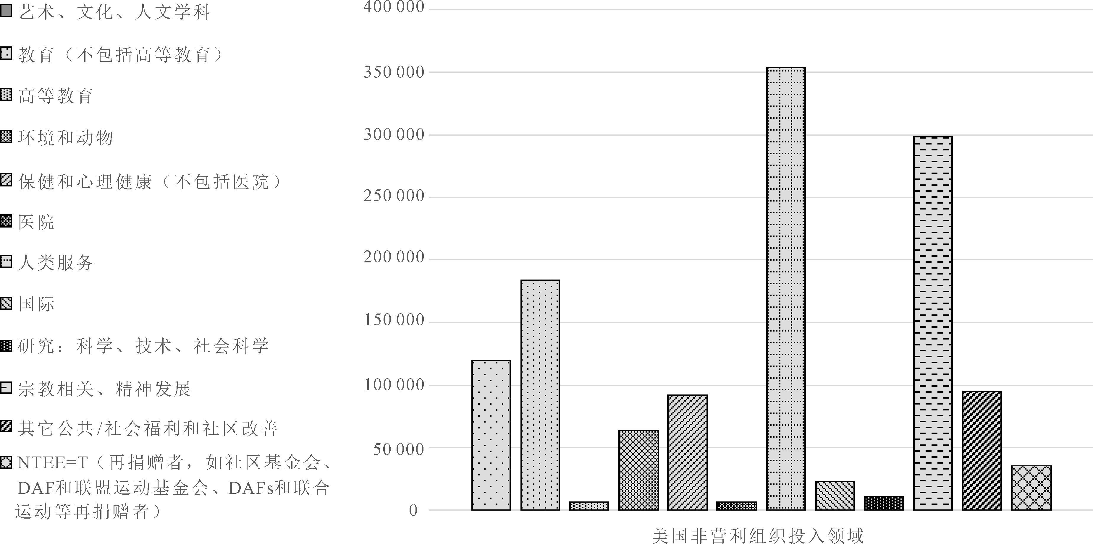 图2 2019年美国各领域非营利组织数量