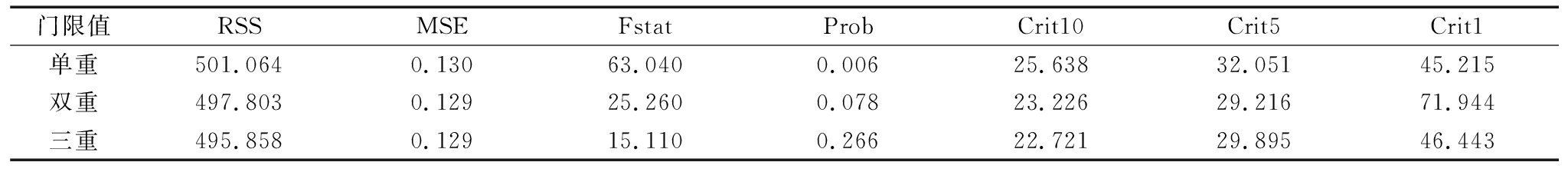 注:RSS表示残差平方和;MSE表示均方误差;Fstat表示F值;Prob表示P值;Crit10表示10%临界值;Crit5表示5%临界值;Crit1表示1%临界值