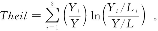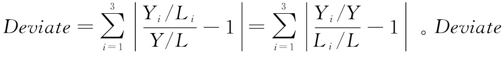 值越大,服务化水平越高,产业结构越高端,反之亦然。上式中,i表示第i产业,Y为产业产值,L为就业人数。