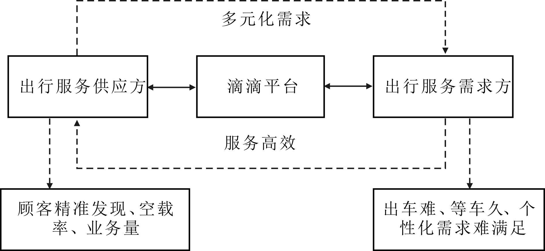 作为用车服务行业,消费者对服务的需求具有多元化特点,具体体现在价格、车辆、用途、路线、时间等方面。只有对消费者需求作出快速反应,才能为消费者提供最佳服务,滴滴高效精准的服务平台运营情况如图5所示。