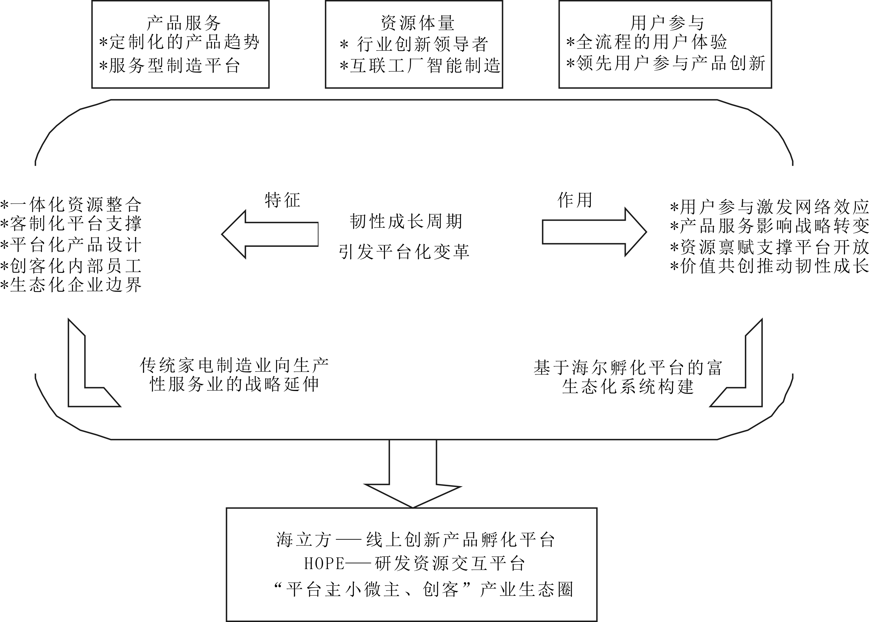 在移动互联时代,企业必须打破原有边界,加强与外界合作伙伴互动协作,逐渐将自身打造为开放式平台,通过网络社交平台吸引用户参与,激发内部员工创造力,积累平台资源,在韧性成长周期中实现价值共创。