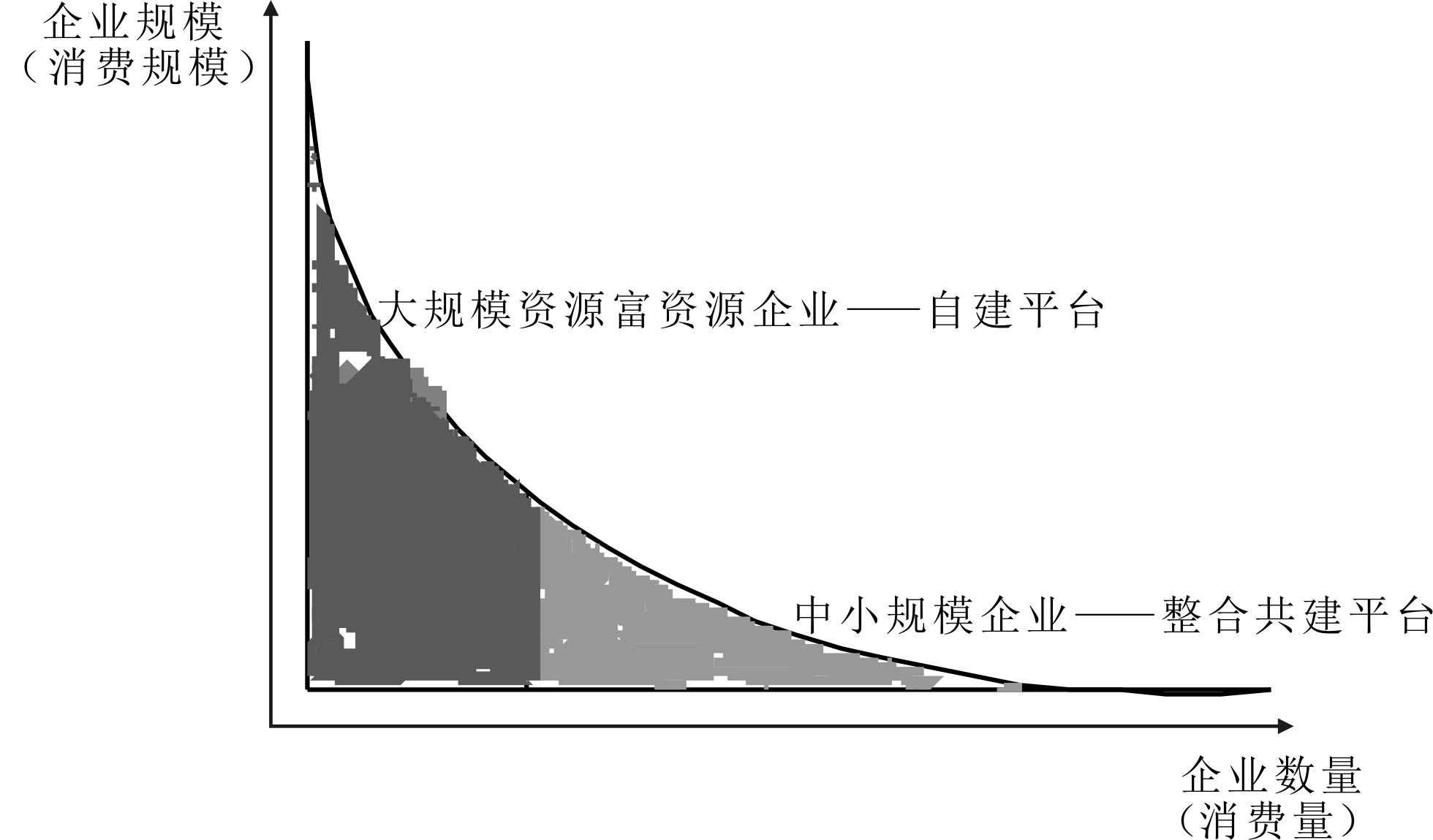(3)资源体量决定平台模式。在平台化整合趋势下,传统大型企业只有实现转型和升级,才能维持其行业地位。具有创新模式并拥有海量数据资源的规模企业,可以采用平台生态模式实现价值共创。