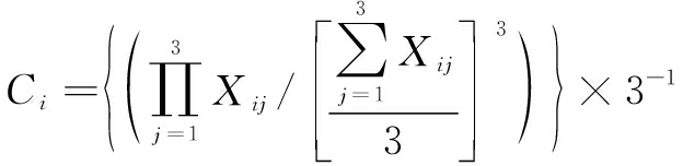 式中,Ci表示第i个省份的创新链耦合度。Xij代表第i个省份在第j个创新链阶段上的综合得分,其分布区间为[0,1],故C值区间为[0,1]。区域创新链各阶段的离散程度越小,C值越高;反之,C值越低。