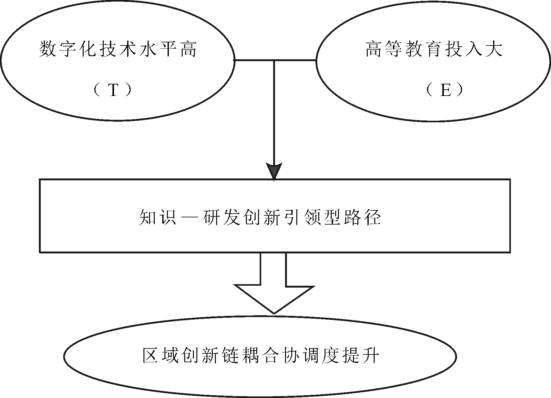 (1)技术层面。选择数字化技术要素,一方面是因为数字化技术为区域信息交换、资源共享和利益表达搭建了技术平台,提升了知识流动效率,降低了流动成本,有利于创新主体收集和利用各类型创新数据;另一方面,针对产业“卡脖子”技术攻关问题,数字化技术有助于提前配置创新资源,集成社会力量,增强创新链各阶段协同技术攻关的韧性和灵活性[21]。因此,数字化技术带来数据流动的自动积累和沉淀,为区域创新链各阶段、各主体协同打下坚实的数据基础,为提升区域创新链耦合协调度提供技术支撑。