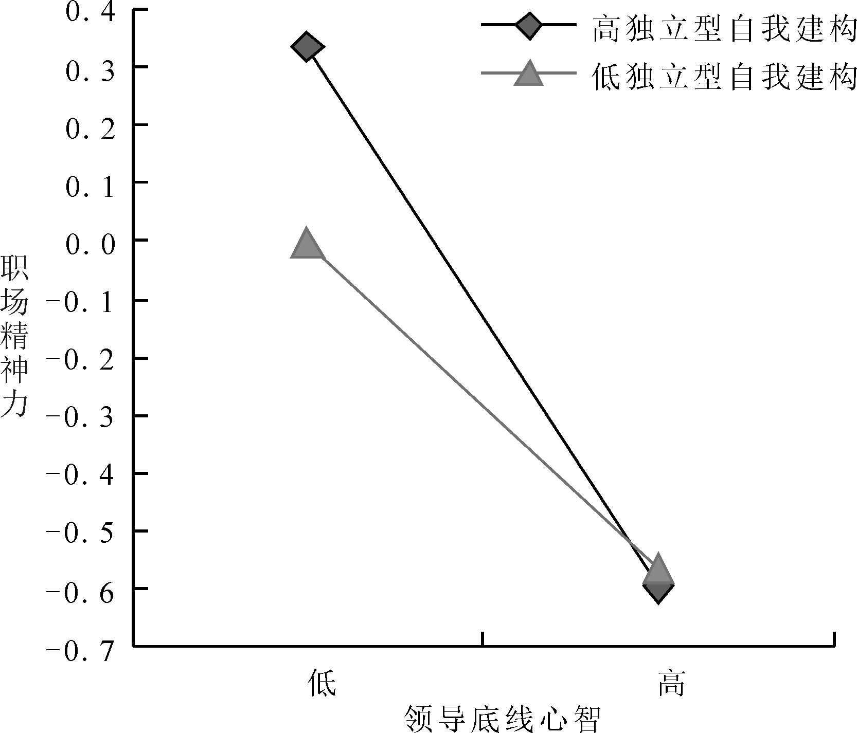 图2 独立型自我建构对领导底线心智与职场精神力间关系的调节效应