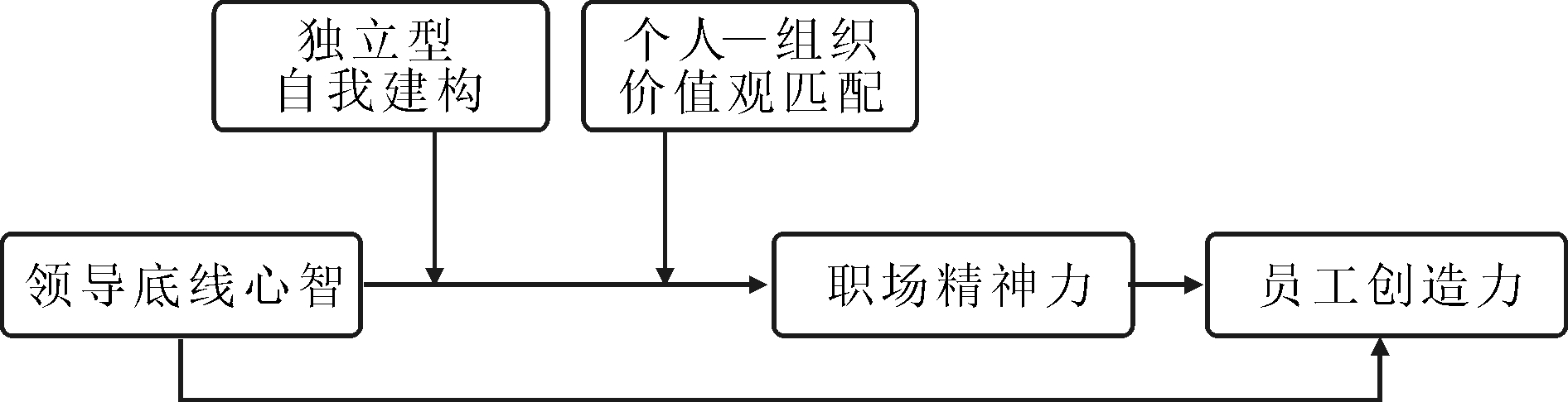 H4:职场精神力在领导底线心智与新生代员工创造力之间发挥中介作用。