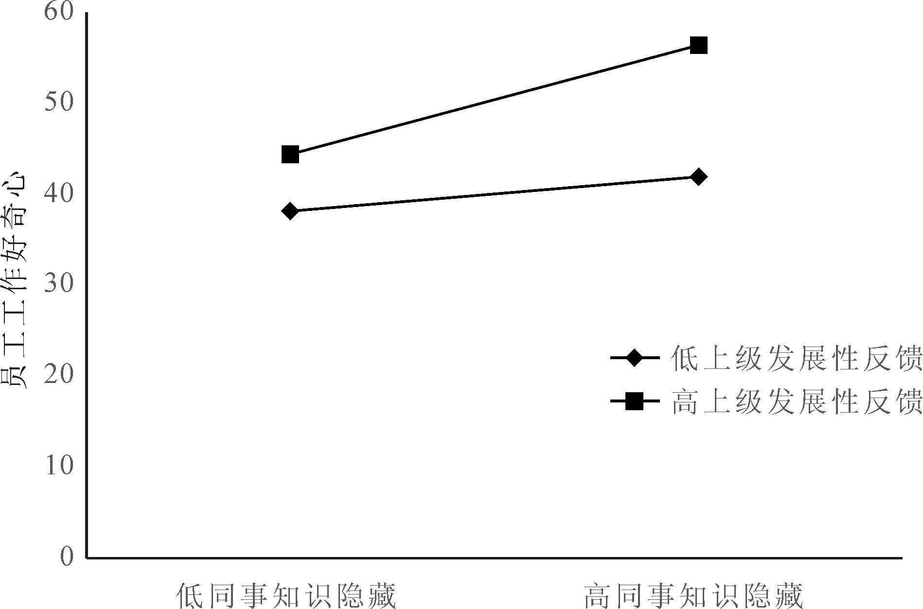 图3 上级发展性反馈对同事知识隐藏与员工工作好奇心间关系的调节作用
