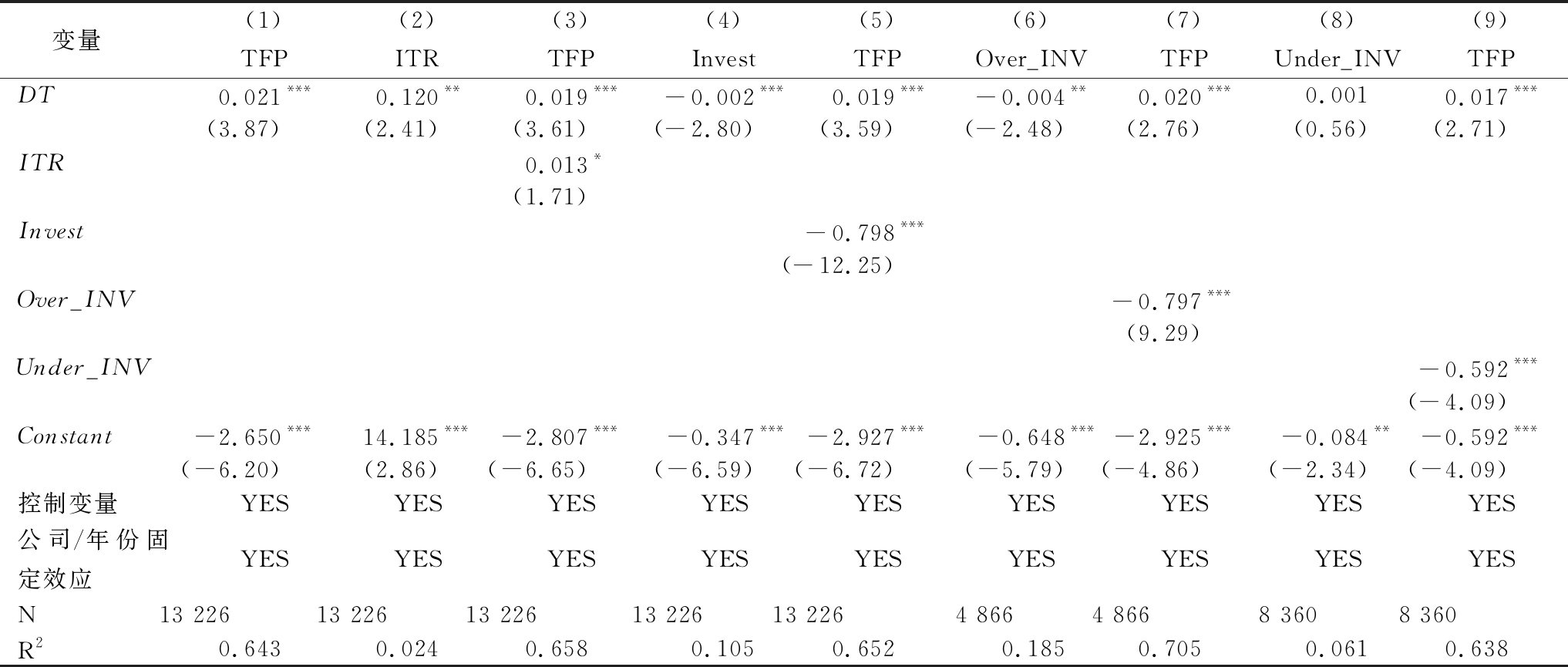 表7 数字化转型、投资效率与全要素生产率检验结果