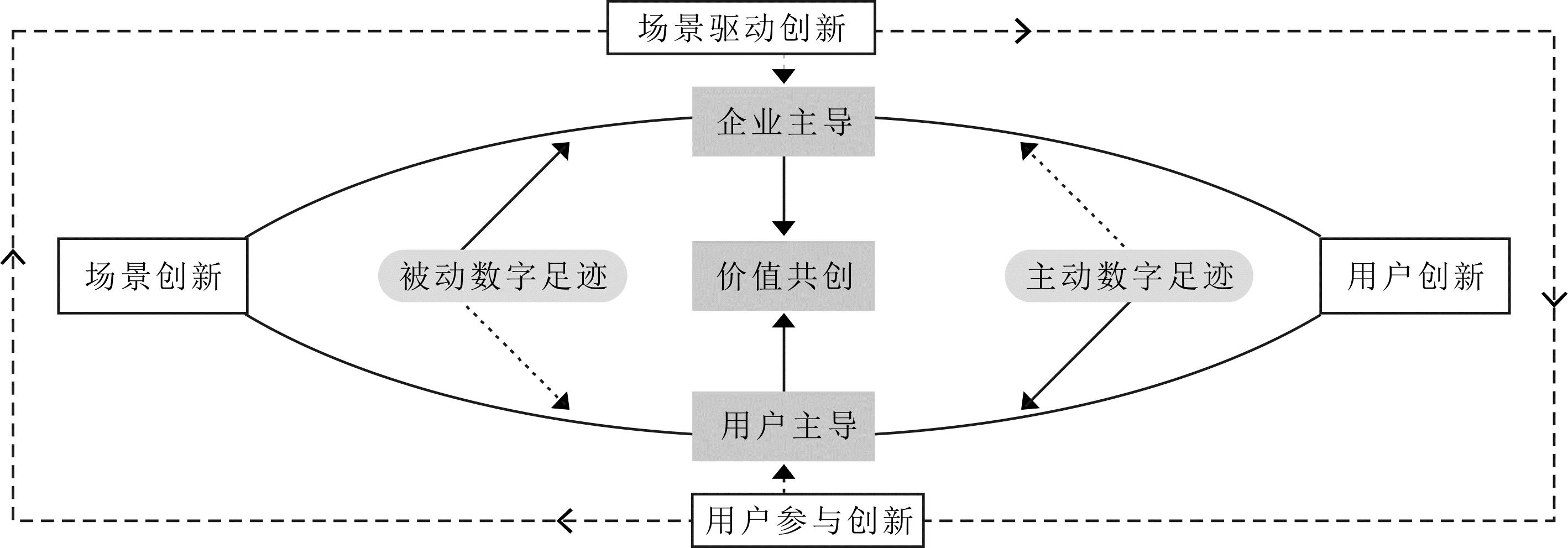 综合来看,消费场景要素组合在满足用户需求与提升用户体验的同时,激发用户产生新需求,而用户新需求通过互动有效转移到企业产品与服务中,最终实现创新与价值共创。因此,场景驱动用户创新的过程本质上是企业主导的场景驱动创新与用户主导的用户参与创新交替作用的价值共创循环系统。