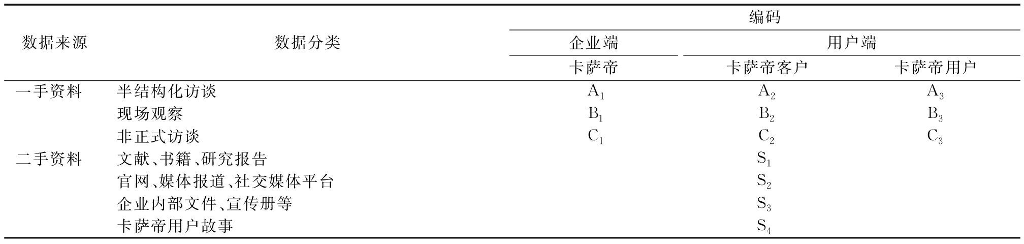数据来源数据分类编码企业端卡萨帝用户端卡萨帝客户卡萨帝用户一手资料半结构化访谈A1A2A3现场观察B1B2B3非正式访谈C1C2C3二手资料文献、书籍、研究报告S1官网、媒体报道、社交媒体平台S2企业内部文件、宣传册等S3卡萨帝用户故事S4