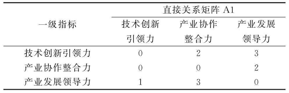一级指标直接关系矩阵A1技术创新引领力产业协作整合力产业发展领导力技术创新引领力023产业协作整合力002产业发展领导力130