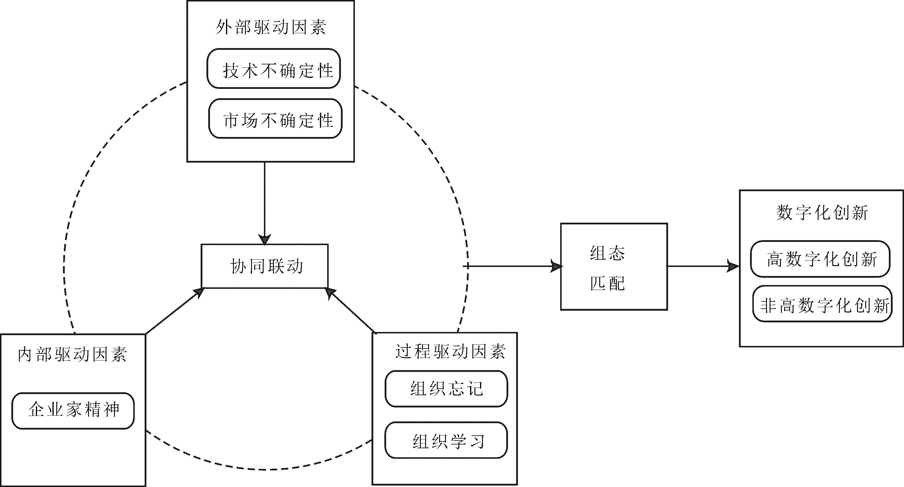 由此可见,现有研究聚焦数字化创新内涵、类型与结果,对数字化创新影响因素分析较少,尤其对数字化创新驱动机理的探究不够深入,缺乏实证检验。数字化创新是企业内、外部环境和过程驱动因素交互的复杂过程,因此,有必要基于数字化创新特性探讨多重因素并发对数字化创新的驱动机理。