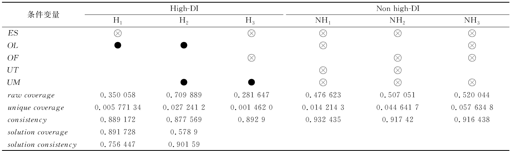 注:●表示核心条件;⊗表示核心条件缺失