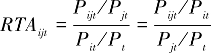 (1) 基于RTA指数法的核心技术能力。计算企业i在技术领域j第t年的RTA指数,如式(1)所示。