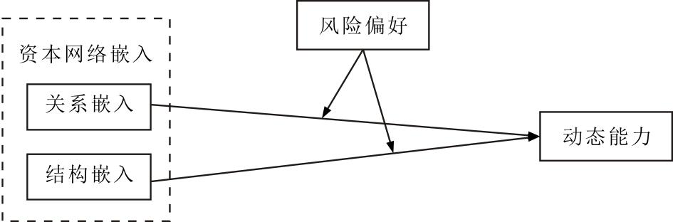 为探讨国际创业企业资本网络嵌入性对其动态能力的作用机制,本文构建以下模型。