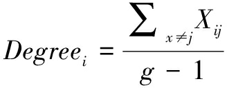 其中,g是网络中的股东人数;若两位股东至少在同一个股东大会中共事,则Xij记为1,反之为0。